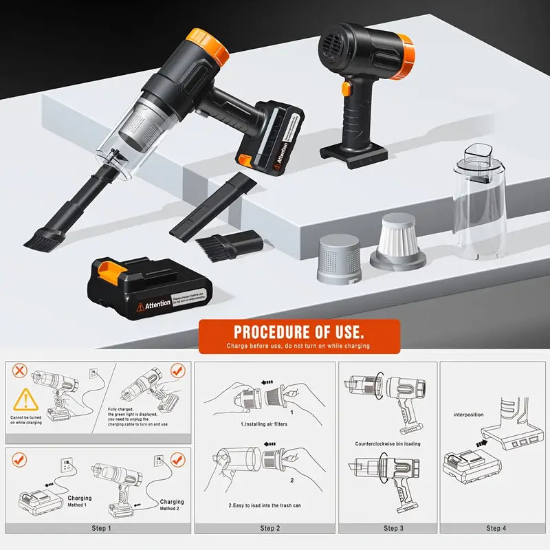 Equipped with 2×2000mAh lithium batteries, enjoy extended cleaning time and quick recharge. Swap out the batteries for uninterrupted performance – perfect for both short touch-ups and heavy-duty cleaning sessions.